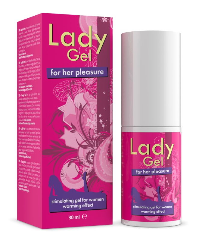 Lady Gel je stimulativni gel za klitoris i vaginu, formulisan da poveća žensko seksualno zadovoljstvo i poboljša osetljivost intimnih delova. Deluje tako što stimuliše protok krvi u klitorisu i vagini. Nakon nanošenja na klitoris i vaginu pruža osećaj golicanja i toplote, povećavajući njegovu osetljivost i intenzivirajući orgazam. Kompatibilan sa lateksom. Dermatološki testiran.