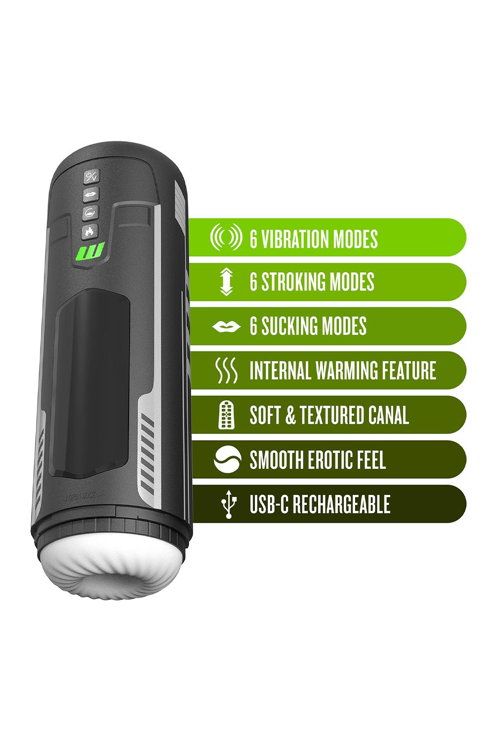 Vaš Kralj masturbatora je stigao. M For Men Master Blaster je u klasi za sebe. Ovaj futuristički, automatski muški masturbator predstavlja diskretan i izdržljiv dizajn, sa zaštitnim poklopcem koji štiti vaš masturbator i čini ga lakim za održavanje. Dolazi sa 4 inovativne funkcije, nudeći veoma prilagodljivo iskustvo milovanja koje je spremno da zadovolji sve vaše zahteve. Pojačajte snagu sa 6 dinamičnih režima vibracije, milovanja i usisavanja koji obasipaju vaš penis talasima zapanjujućih senzacija. Najsavremenija tehnologija usisavanja simulira realistično oralno iskustvo, omogućavajući vam da osetite svaki centimetar meke i teksturirane unutrašnje komore. Luksuzna funkcija zagrevanja zagreva vaše želje, nudeći dodatnu stimulaciju za jedinstveno impresivno iskustvo. Sa uključenim USB-C punjačem, uživajte u do 60 minuta snage sa punim punjenjem. Spremite se da pređete u novo doba zadovoljstva milovanja sa Master Blasterom. Slava kralju! Ukupna dužina je 26.7cm, a dužina za umetanje je 11.4cm. Širina je 8.9cm, a obim je 27.9cm. Preporučujemo upotrebu lubrikanta na vodenoj bazi.