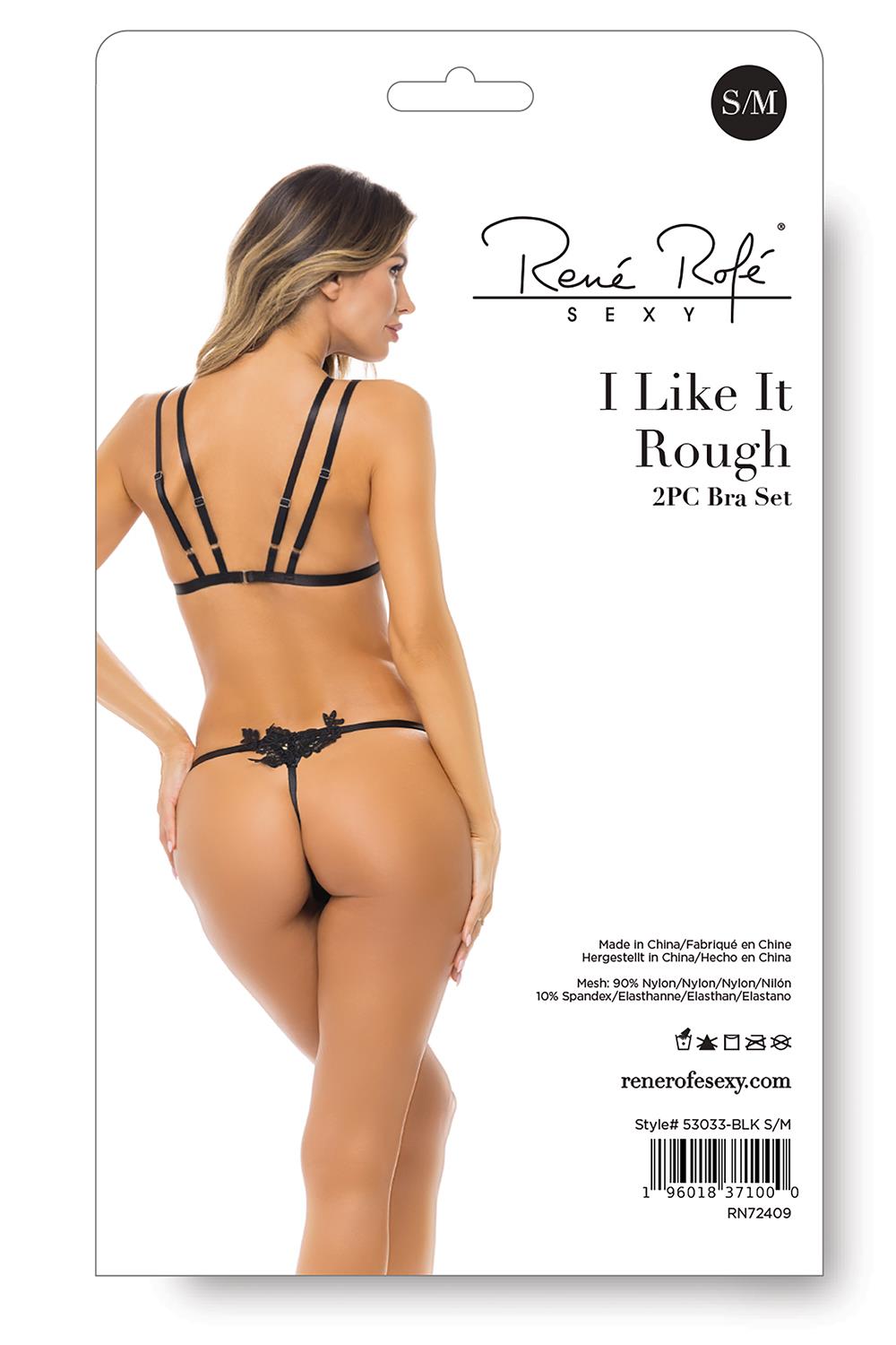 Otkrijte svoje najsenzualnije želje uz ovaj set  „I Like It Rough“. Sa zavodljivim cvetnim aplikacijama i prelepo izrađenim bretelama, ovaj komplet je dizajniran da vašeg partnera ostavi bez daha. Održava se ručnim pranjem u hladnoj vodi. Sušiti na vešalici  i ne peglati.