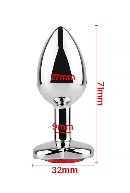 Metalna analna kupa, izrađena je od metala (bez nikla) sa kristalom na dnu u obliku srca, je ergonomskog dizajna i idealna kako za početnike tako i za one iskusnije. Zbog svog konusnog oblika će uvek stajati na mestu, što garantuje i udobnost i sigurnost, pri upotrebi.Radi lakše penetracije, preporučujemo upotrebu lubrikanta na bazi vode koji takođe možete naći kod nas u prodaji. Nakon upotrebe je bitno samo isprati ga toplom vodom i sapunicom. Cirkoni na dnu se dobijaju nasumično osim ako prilikom pravljenja narudžbine u napomeni ne napišete koju boju želite. Ukupna dužina: 7cm. Korisna dužina: 6cm. Ukupan prečnik: 2.7cm.