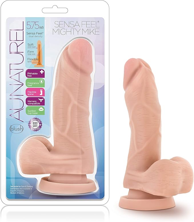Realistični materijal Real-Feel je čvrst iznutra, a mekan spolja. Pokretan - fleksibilno vratilo se savija i drži položaj. Kompatibilan sa pojasevima. Moćni Majk je možda sitan, ali je spreman da udovolji savitljivim vratilom koje može da drži bilo koji položaj koji želite. Savijte ga malo ili mnogo za senzualnu stimulaciju G-tačke. Napravljen tehnologijom Sensa Feel dvostruke gustine, Majk pruža ekstra realističan osećaj čvrstoće i mekoće koji nećete zaboraviti. Uživajte u njegovom venisanom vratilu i stiskajućim testisima još više uz jaku vakuumsku čašicu koja se prijanja uz bilo koju glatku površinu. Takođe je kompatibilan sa pojasevima, savršen za ne previše duboku penetraciju. Sensa Feel je bezbedan za telo, bez ftalata i lateksa za čisto zadovoljstvo.