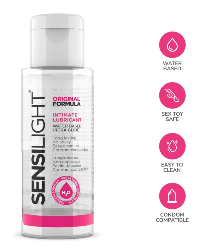 Sensilight Original Formula je lubrikant na bazi vode, sa efektom podmazivanja i hidratacije. Namenjen za upotrebu u intimnim delovima tela, formulisan je da olakša seksualni odnos u slučaju nedovoljnog prirodnog podmazivanja. Ovaj proizvod se lako ispira, ne ostavlja mrlje niti masne naslage i kompatibilan je sa upotrebom kondoma. Lubrikant garantuje dugotrajan i udoban efekat podmazivanja. Takođe se može primeniti na sve seks igračke. Nežna formula Sensilight Original Formule klizi po koži kako bi se sprečila bilo kakva nelagodnost ili peckanje. Njegova posebna formula čini ga savršenim za vaginalni seks, jer ima maksimalnu kompatibilnost sa sluzokožom.