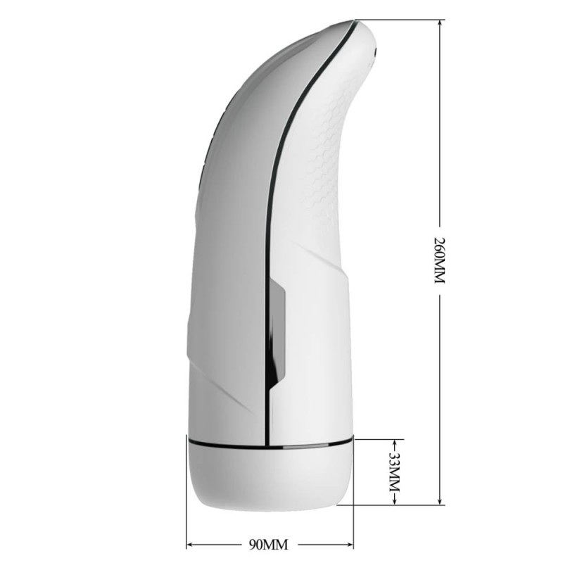 Najnoviji masturbator sa zagrevanjem do 48 stepeni koji vrši oralnu simulaciju i vibrira.Ima 12 modova vibracije i 7 funkcija lizanja dok se na vrhu nalazi jezik koji stimuliše sam vrh penisa sa perfektnom unutrašnjom strukturom.Uz njega dobijate slušalice kojima čujete sexy glas za još veće uzbuđenje.Dužine 26cm i prečnika 9cm.Ima svoj Usb punjač za punjenje na svakom računaru.Možete koristiti vodeni lubrikant za savršen osećaj tokom korišćenja.Poznati Svetski brend je proizvodjač.